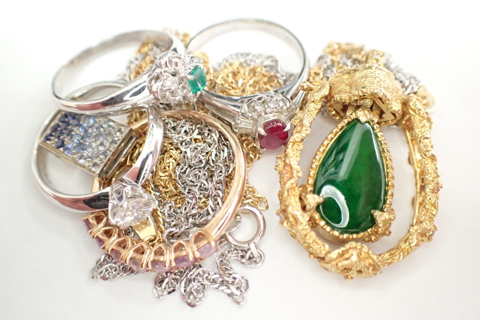 - 貴金属ジュエリー宝石金プラチナダイヤルビーエメラルドサファイア翡翠ヒスイ18金Pt900Pt850K18製の指輪やネックレスなどを買取させていただきました!